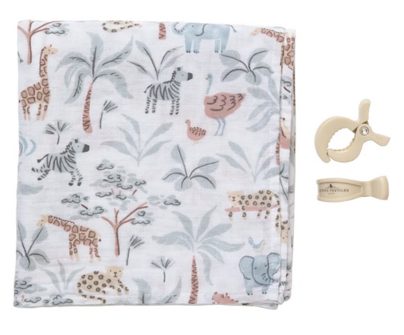 Living Textiles - Organic Muslin Swaddle & Peg Set/Wild Safari