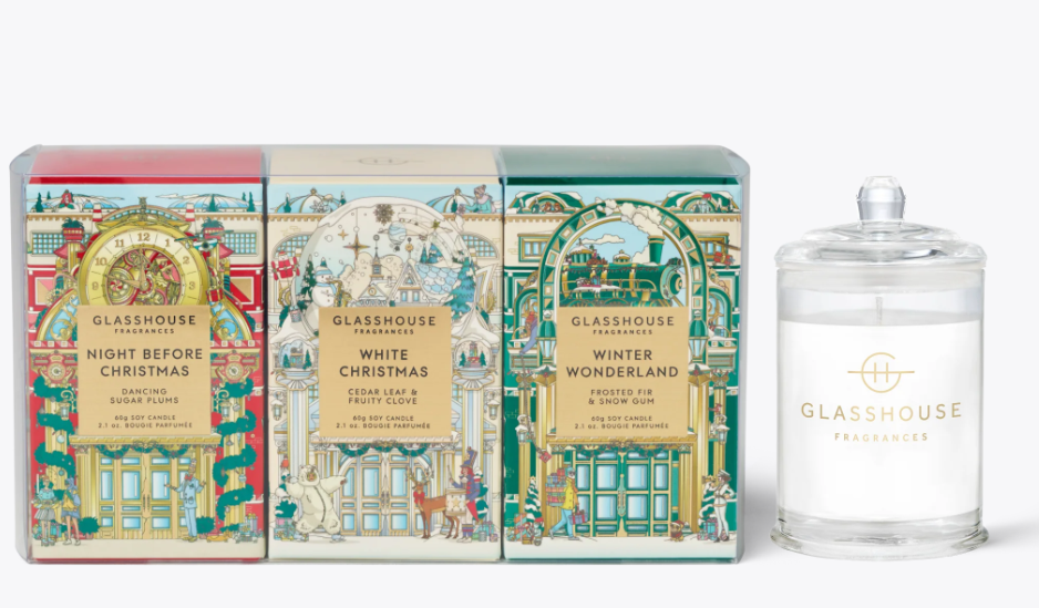 Glasshouse Fragrance 60g Candle Trio/ WinterW, NightBC, White Xmas X25