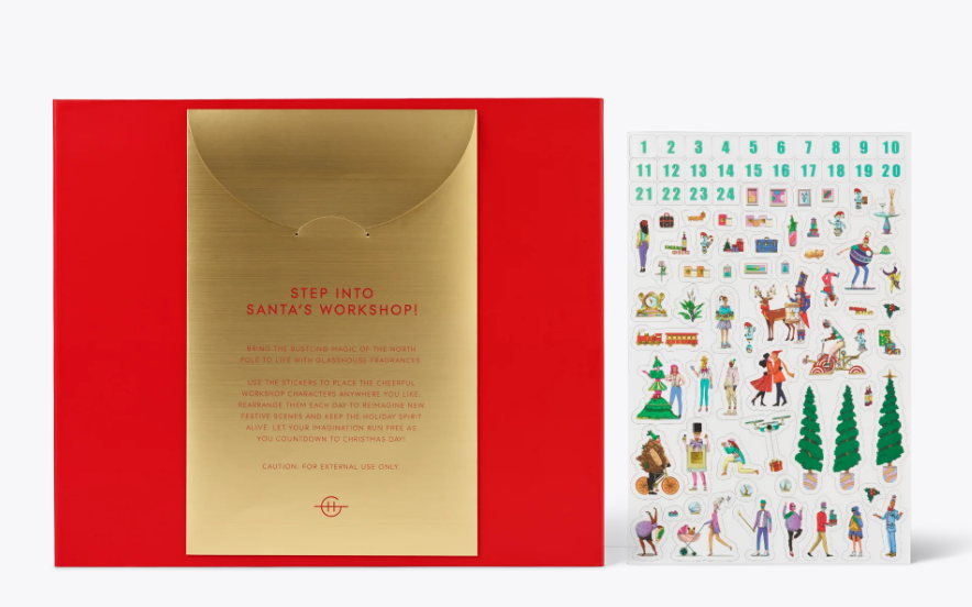 Includes 24 scented surprises, festive workshop characters, and numbered stickers, all beautifully presented in a gift box featuring designs by artist Aeoniumsky.