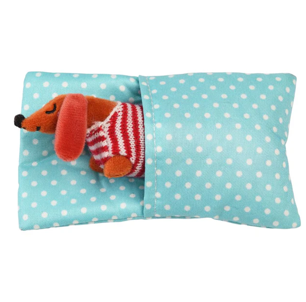 - Adorable Design: Features a soft sausage dog toy with a stripy jumper and polka dot blanket.