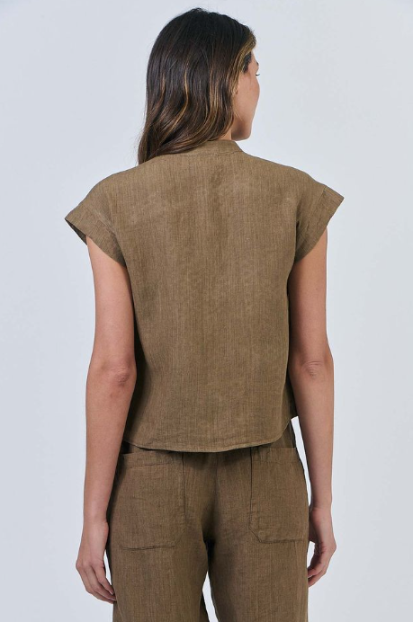 Naturals by O&J Buttoned Linen Top- Tobacco