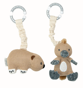 Keep baby entertained when out and about with our sweet Platypus and Wombat stroller toy.