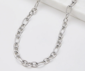 The Carla Necklace, a versatile chain necklace designed to hold your favourite charms or to be worn elegantly on its own. Crafted from durable stainless steel, this necklace is not only stylish but also waterproof, ensuring it retains its brilliance in any condition. Made Nickel Free Hypoallergenic stainless steel metal Stainless Steel Length: 46cm (L) + 5cm extender chain Waterproof / Ocean proof