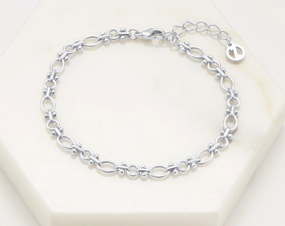 Our special Vintage Summer bracelet, Pip. With a simple and harmonious design, this bracelet is all about timeless style without the extra frills. It's the go-to accessory for adding a touch of vintage charm to your look or complementing your everyday wear with an easygoing vibe. The Pip Bracelet is your choice for a hint of vintage and a dash of versatile style, making it a classic addition to your collection. Can be worn in harmony with the Pip Necklace.  Made Nickel Free Hypoallergenic brass metal  Silver Rhodium Plated Bracelet Size is 17cm + 3cm extender Water resistant